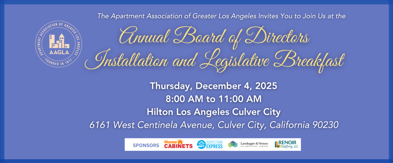 The Apartment Association of Greater Los Angeles Invites You to Join Us at the Annual Board of Directors Installation and Legislative Breakfast