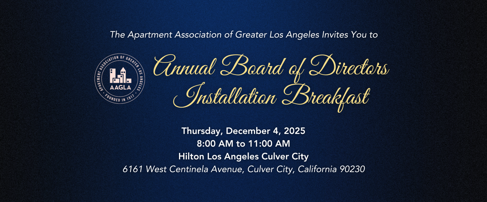 Enjoy breakfast as we welcome our newly installed Board and President. Hear from local and state elected officials, and connect with fellow members, vendors, and community leaders from across the Southern California rental housing industry.