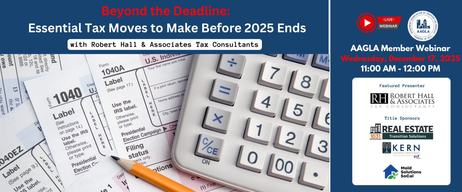 With 2025 winding down and sweeping new tax legislation reshaping the landscape, now is the time to take proactive steps to secure your financial future and maximize your tax savings before key provisions take effect. Join us for an insightful webinar led by Nicole Green, a tax advisor from Robert Hall & Associates, where we’ll walk you through strategies that combine timeless year-end planning with the latest updates from the new tax bill. Learn how to adapt to the evolving tax code and position yourself for success in 2026 and beyond.