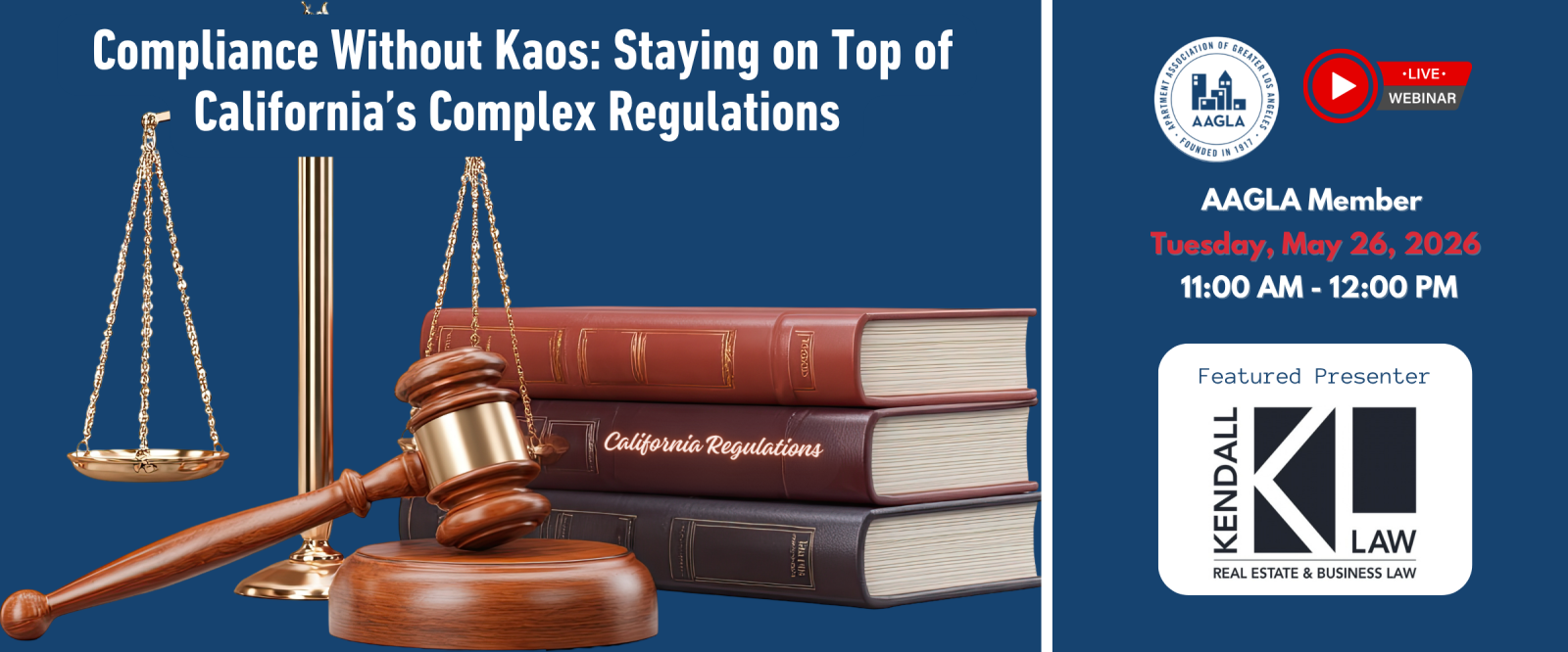 To survive and ultimately thrive in today’s regulatory environment, it is important for property owners to stay up to date and regularly review resources from the Apartment Association of Greater Los Angeles regarding new laws, rent limits, maintaining housing conditions, and landlord rights. Today’s housing providers must also maintain a regular schedule for inspections and ongoing maintenance to address and repair hazards promptly. For some, property management may have proven far too daunting, and should consider hiring professionals who are experts in state and local regulations to prevent legal issues.