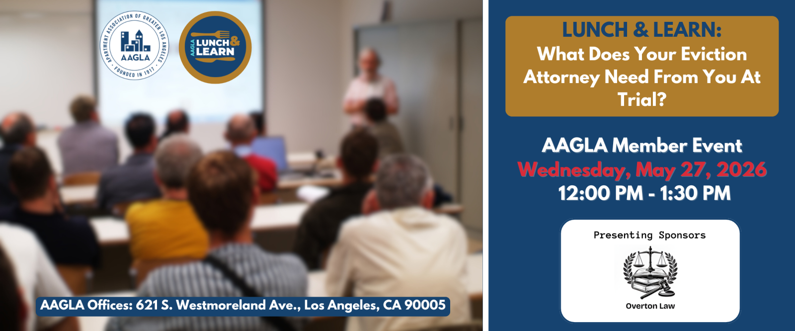 - Where: Apartment Association of Greater Los Angeles – 621 South Westmoreland Avenue, Los Angeles, CA