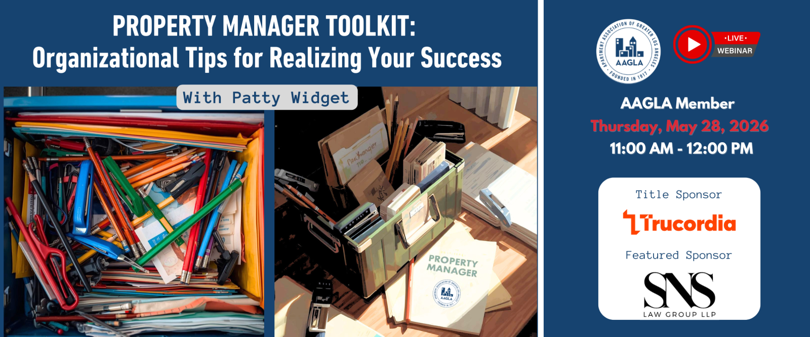 Our leading multifamily industry expert, Patti Widget, the founder of Widget’s Way and now AAGLA operational advisor again, joins us for another amazing presentation that will help YOU to better survive and work far more efficiently in today’s fast-paced environment. Patti’s advice will help YOU to successfully and quickly address whatever current crisis you find yourself in. PLEASE, join us for what will most certainly be an informative online seminar via ZOOM.
