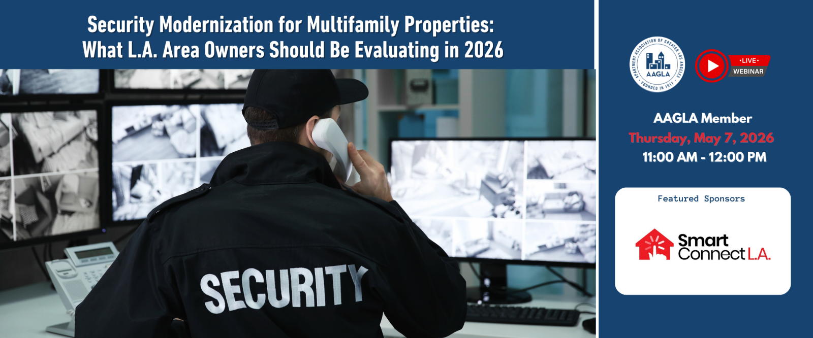 Act Now! For Apartment Association of Greater Los Angeles members, Smart Connect L.A. is offering a complimentary Property Security and Access Control Assessment. Their licensed C-7 team will evaluate your existing camera systems, access control hardware, gate and entry systems, and overall security infrastructure to identify vulnerabilities and modernization opportunities, and members will receive clear, actionable recommendations tailored to your property, with no obligation. For more information, go to https://www.smartconnectla.com/ or call (310) 893-0878.