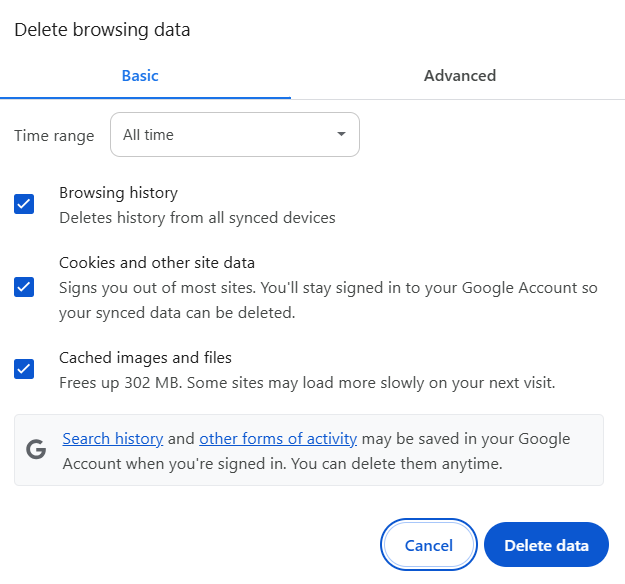 - Click Delete data. If you delete cookies while signed in to Chrome, you won't be signed out of your Google Account.